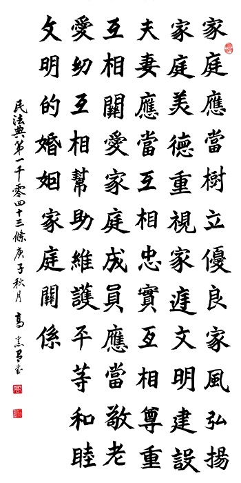 民法典第一千零四十三條 家庭應當樹立優(yōu)良家風,弘揚家庭美德,重視家庭文明建設。