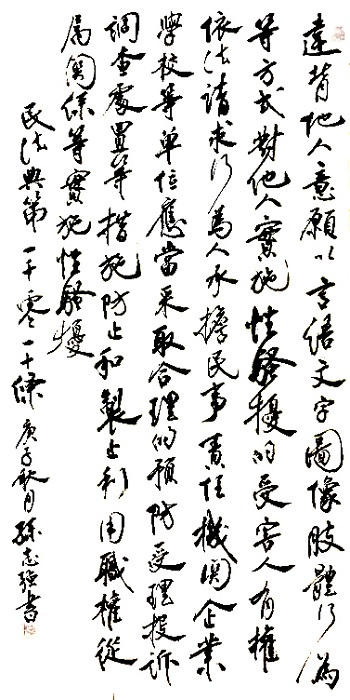 “書·法”活動旨在為創(chuàng)新法治宣傳教育,多開一點(diǎn)腦洞、多花一點(diǎn)心思、多出一點(diǎn)力量、多做一點(diǎn)貢獻(xiàn),引領(lǐng)和推動更多的人拿起筆來學(xué)法、寫法,在不斷“書·法”過程中,提升自身的法治素養(yǎng),在全社會弘揚(yáng)法治精神。