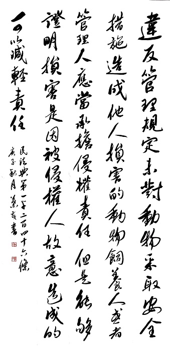 民法典第一千二百四十六條 違反管理規(guī)定,未對(duì)動(dòng)物采取安全措施造成他人損害的,動(dòng)物飼養(yǎng)人或者管理人應(yīng)當(dāng)承擔(dān)侵權(quán)責(zé)任;但是,能夠證明損害是因被侵權(quán)人故意造成的,可以減輕責(zé)任。