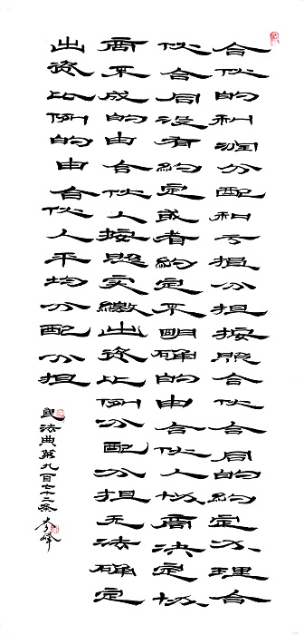 民法典第九百七十二條 合伙的利潤分配和虧損分擔(dān),按照合伙合同的約定辦理;合伙合同沒有約定或者約定不明確的,由合伙人協(xié)商決定;協(xié)商不成的,由合伙人按照實繳出資比例分配、分擔(dān);無法確定出資比例的,由合伙人平均分配、分擔(dān)。