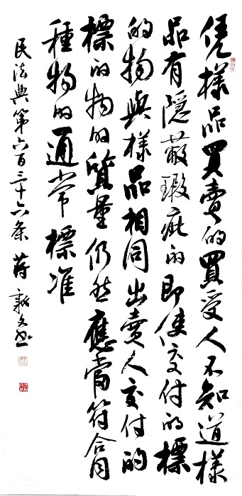 民法典第六百三十六條 憑樣品買賣的買受人不知道樣品有隱蔽瑕疵的,即使交付的標(biāo)的物與樣品相同,出賣人交付的標(biāo)的物的質(zhì)量仍然應(yīng)當(dāng)符合同種物的通常標(biāo)準(zhǔn)。