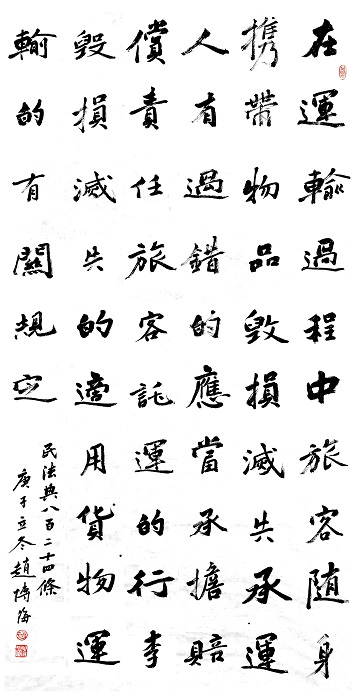 民法典第八百二十四條 在運(yùn)輸過程中旅客隨身攜帶物品毀損、滅失,承運(yùn)人有過錯(cuò)的,應(yīng)當(dāng)承擔(dān)賠償責(zé)任。