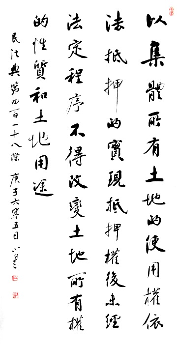 民法典第四百一十八條 以集體所有土地的使用權依法抵押的,實現(xiàn)抵押權后,未經(jīng)法定程序,不得改變土地所有權的性質和土地用途。