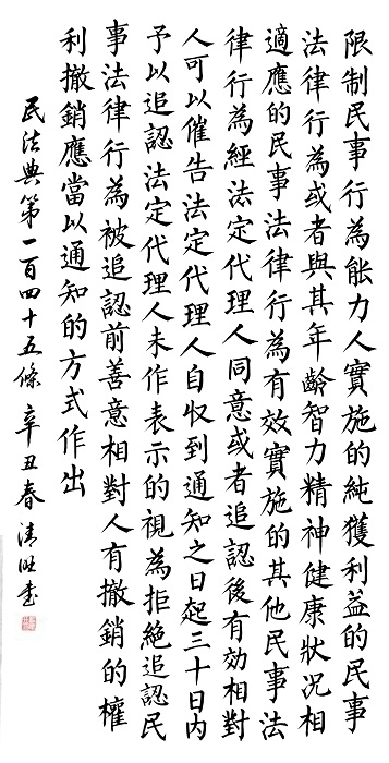 “書·法”活動(dòng)以書寫《中華人民共和國(guó)民法典》法條開筆,未來(lái)將對(duì)準(zhǔn)更多的法律。