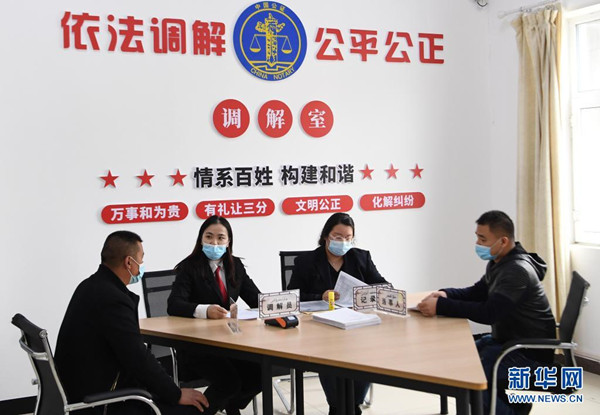 3月28日,新疆阿勒泰市人民法院司法輔助中心工作人員在調(diào)解矛盾糾紛?!?/span>