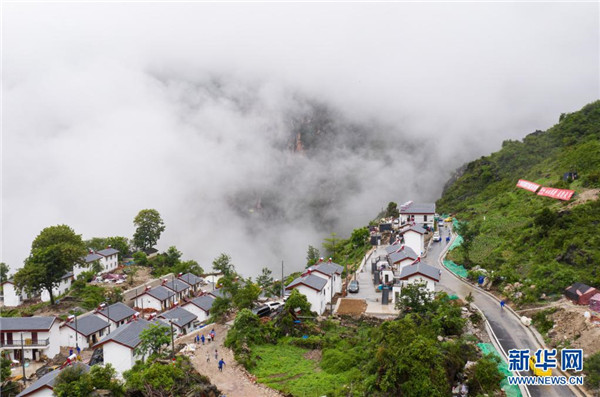 2020年6月30日,一輛客運面包車行駛在四川涼山州布拖縣阿布洛哈村新完工的村道上(無人機照片)。新華社記者 江宏景 攝