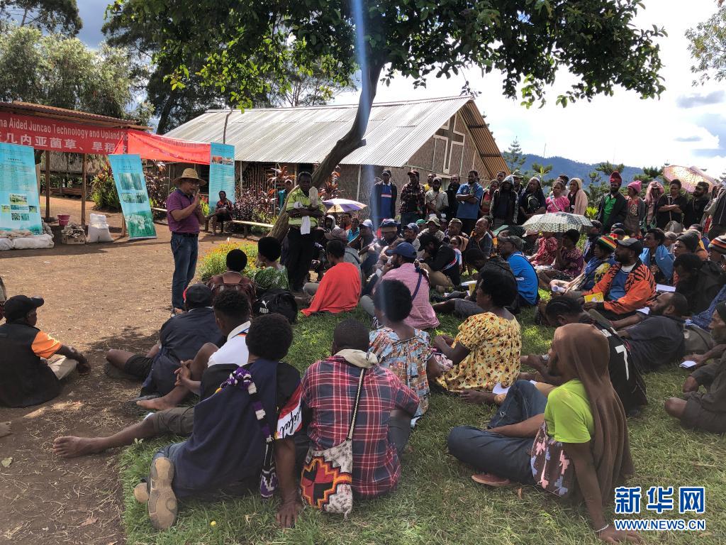 2020年12月15日,林應興(戴草帽者)在巴布亞新幾內亞東高地省中國援助巴新菌草和旱稻技術項目第9期培訓班上授課。新華社發(fā)