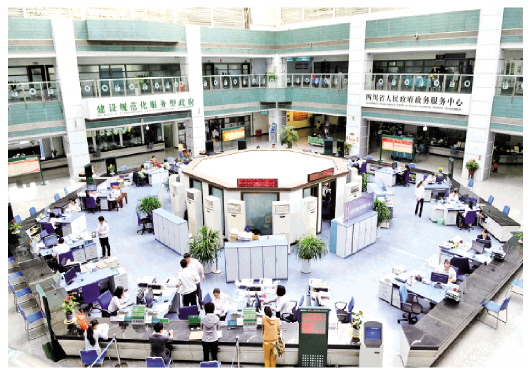 2013年,國務院決定先行取消和下放91項行政審批事項,并要求各部門加大減少和下放行政審批事項工作力度,簡政放權(quán)、放管結(jié)合、優(yōu)化服務,簡稱“放管服”改革。圖為四川省人民政府政務服務大廳。 法治日報全媒體記者 楊晉峰 攝