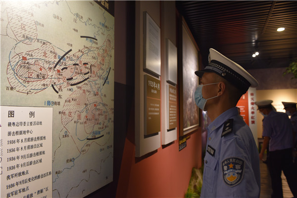 在大余梅嶺,民輔警代表參觀了陳毅紀(jì)念館,聆聽開國元勛們在艱苦卓絕斗爭條件下的感人故事,感受革命前輩勇往直前的斗志和視死如歸的氣魄。誦讀《梅嶺三章》,深切感受那激蕩天地的革命豪情以及堅(jiān)貞不屈的人格力量。