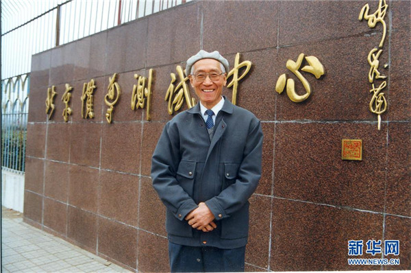 上世紀(jì)90年代,陸元九在北京慣導(dǎo)測(cè)試中心調(diào)研時(shí)在門前留影。新華社發(fā)(中國(guó)航天科技集團(tuán)供圖)