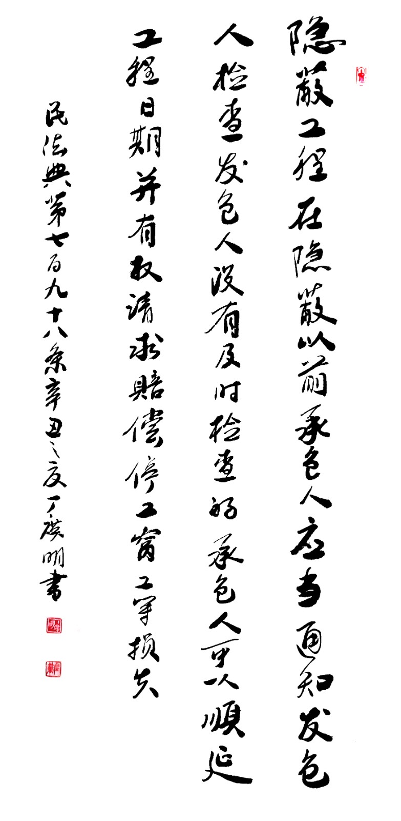 民法典第七百九十八條 隱蔽工程在隱蔽以前,承包人應(yīng)當(dāng)通知發(fā)包人檢查。發(fā)包人沒(méi)有及時(shí)檢查的,承包人可以順延工程日期,并有權(quán)請(qǐng)求賠償停工、窩工等損失。