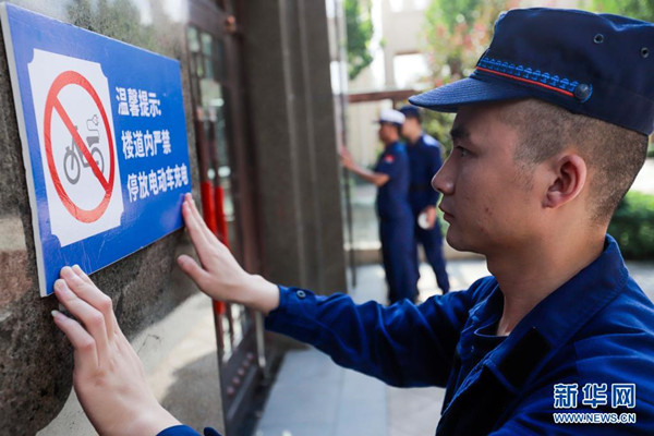 8月1日起,《高層民用建筑消防安全管理規(guī)定》開始施行,對電動車“進樓”問題作出規(guī)定。規(guī)定明確,禁止在高層民用建筑公共門廳、疏散走道、樓梯間、安全出口停放電動自行車或者為電動自行車充電。鼓勵在高層住宅小區(qū)內(nèi)設(shè)置電動自行車集中存放和充電的場所。