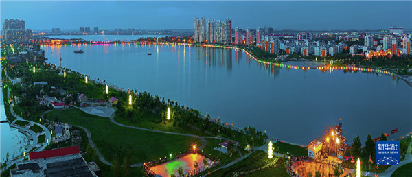 大慶市黎明湖夜景(資料照片)。新華社發(fā)(劉為強 攝)