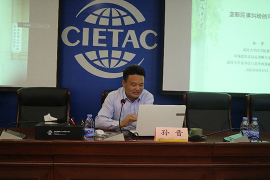 史密夫菲爾科偉聯(lián)營辦公室合伙人徐明妍律師、武漢大學(xué)知識產(chǎn)權(quán)與競爭法研究所研究員周圍副教授、市場監(jiān)管總局反壟斷專家?guī)鞂<?、武漢大學(xué)競爭法與競爭政策研究中心主任孫晉教授先后在研討會上發(fā)表了主旨演講。