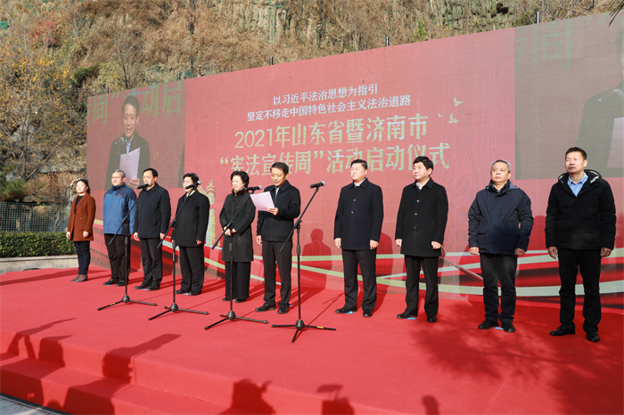 11月29日,2021年山東省暨濟南市“憲法宣傳周”活動啟動儀式在歷下區(qū)洪山憲法主題公園舉行?;顒蝇F(xiàn)場,來自歷下區(qū)的64名行政執(zhí)法人員進(jìn)行了集體宣誓。