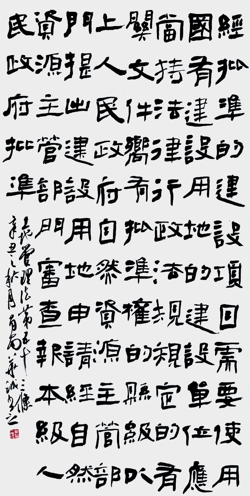 繼1600余位書法家參與書寫《中華人民共和國(guó)民法典》全部1260條法條之后,法治日?qǐng)?bào)社聯(lián)合自然資源部法規(guī)司、自然資源部書畫研究會(huì)和北京昌平書法家協(xié)會(huì),將筆端對(duì)準(zhǔn)土地管理“一法一條例”,即《中華人民共和國(guó)土地管理法》和《中華人民共和國(guó)土地管理法實(shí)施條例》。