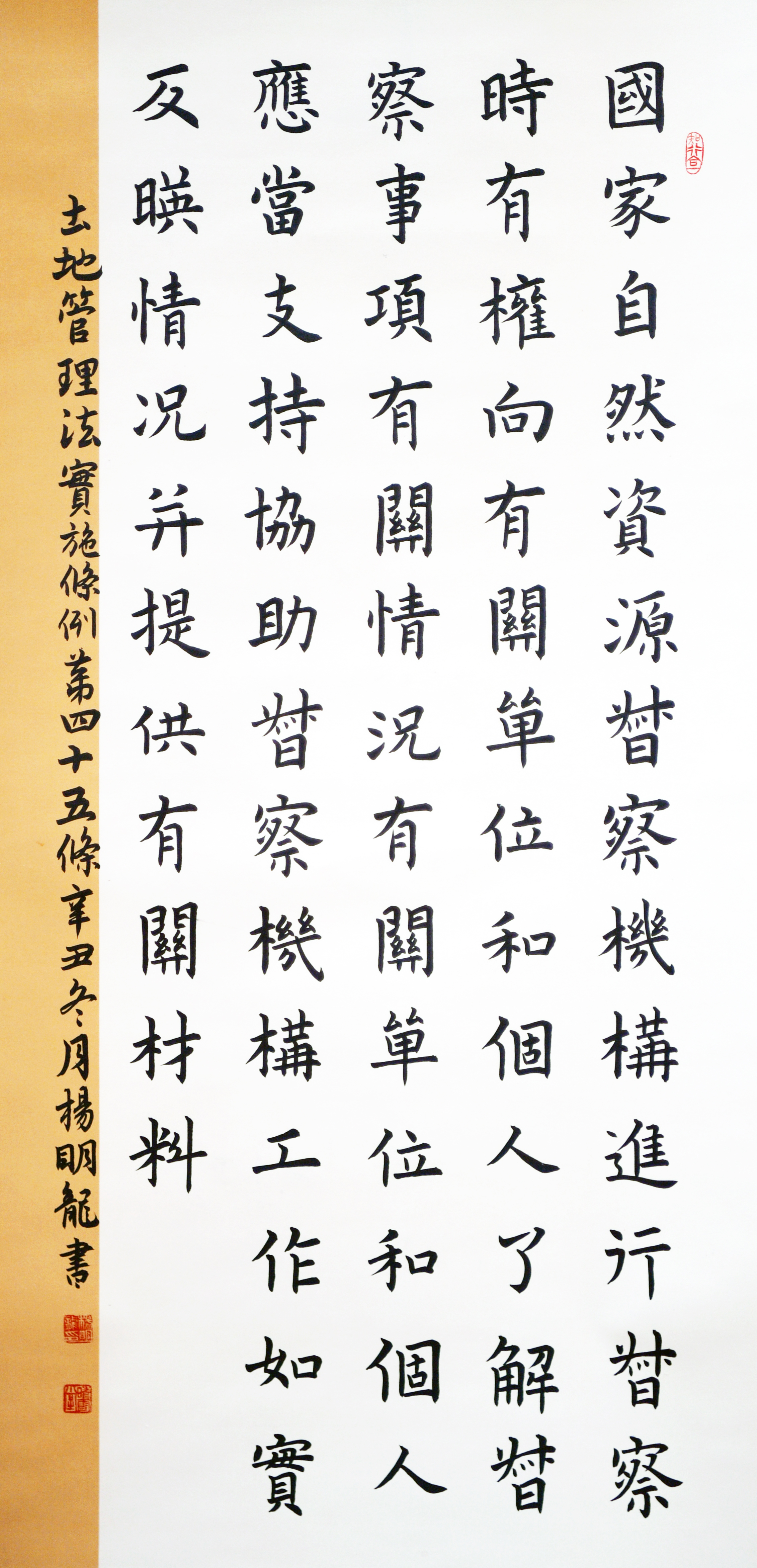 繼1600余位書法家參與書寫《中華人民共和國民法典》全部1260條法條之后,法治日報(bào)社聯(lián)合自然資源部法規(guī)司、自然資源部書畫研究會(huì)和北京昌平書法家協(xié)會(huì),將筆端對準(zhǔn)土地管理“一法一條例”,即《中華人民共和國土地管理法》和《中華人民共和國土地管理法實(shí)施條例》。