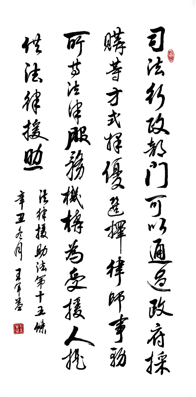 “書·法”活動(dòng)旨在為創(chuàng)新法治宣傳教育,多開一點(diǎn)腦洞、多花一點(diǎn)心思、多出一點(diǎn)力量、多做一點(diǎn)貢獻(xiàn),引領(lǐng)和推動(dòng)更多的人拿起筆來學(xué)法、寫法,在不斷“書·法”過程中,提升自身的法治素養(yǎng),在全社會(huì)弘揚(yáng)法治精神。