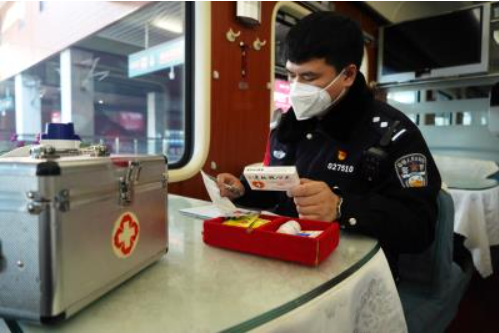 1月27日早晨,江蘇泰州開往黑龍江哈爾濱的Z156次列車上,乘警張嘉琪一路巡查,目光在車廂各個角落迅速掃描,不時伸手摸摸消防器材、行李架。
