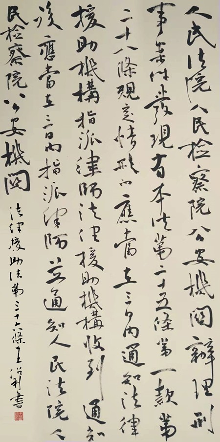 “書·法”活動旨在為創(chuàng)新法治宣傳教育,多開一點腦洞、多花一點心思、多出一點力量、多做一點貢獻,引領(lǐng)和推動更多的人拿起筆來學(xué)法、寫法,在不斷“書·法”過程中,提升自身的法治素養(yǎng),在全社會弘揚法治精神。