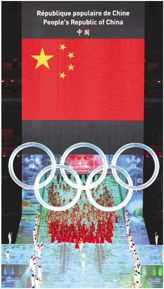 2月4日晚,第二十四屆冬季奧林匹克運(yùn)動(dòng)會(huì)開幕式在北京國家體育場(chǎng)舉行。圖為中國代表團(tuán)在開幕式上入場(chǎng)。 新華社記者 楊磊 攝