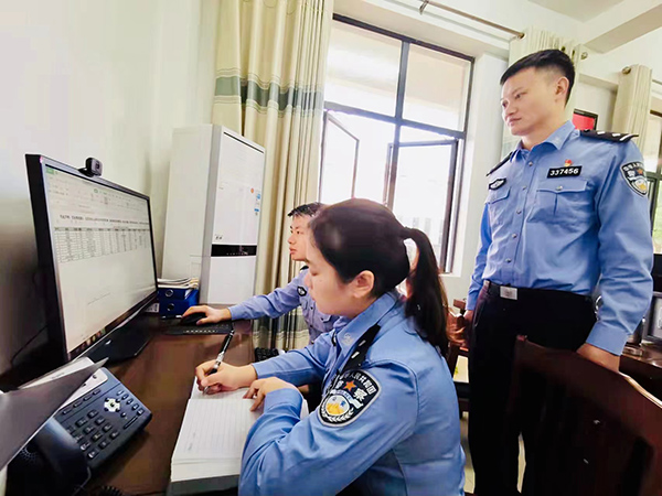 圖為春節(jié)期間值班民警廖寶承正在排查涉疫數(shù)據(jù) 黃海城 攝