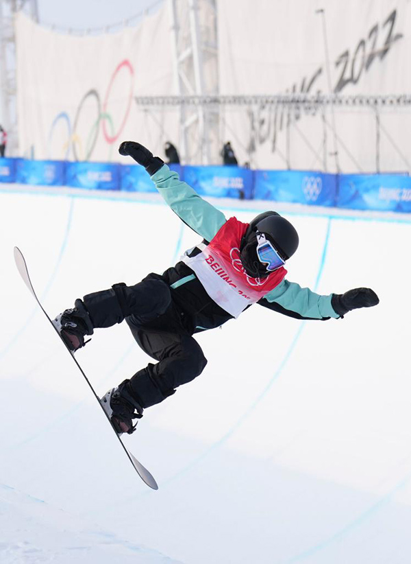 2月9日,中國(guó)選手蔡雪桐在北京2022年冬奧會(huì)單板滑雪女子U型場(chǎng)地技巧比賽中。新華社記者牟宇攝
