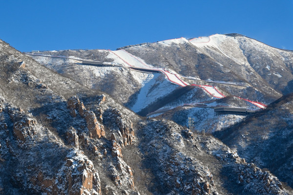 2月14日,雪后的北京延慶國(guó)家雪車雪橇中心銀裝素裹,美不勝收。新華社記者 陳益宸 攝