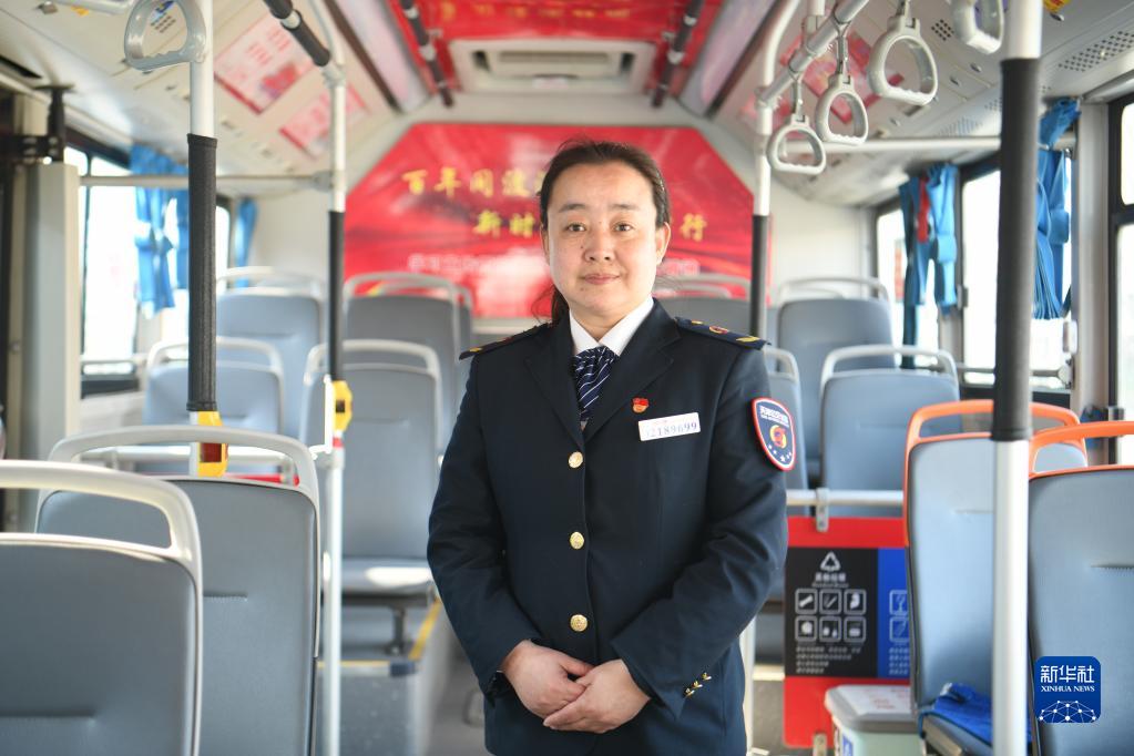 2月24日,這是在8路公交車內(nèi)拍攝的王艷。新華社記者 孫凡越 攝