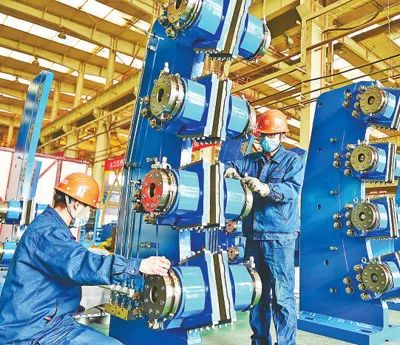 在河南省洛陽市中信重工車間內,工人忙著趕制礦山裝備產品訂單。