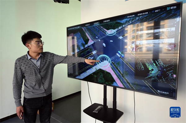 工作人員在雄安數(shù)字交通實驗室介紹數(shù)字交通實驗室項目(1月7日攝)。新華社記者 駱學峰 攝