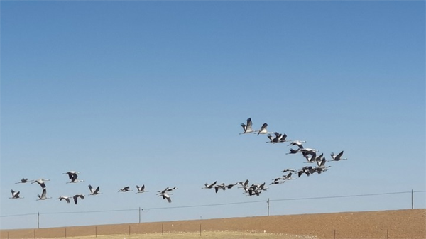 今年3月,青海果洛藏族自治州瑪多縣境內(nèi)的三江源國家公園,蓑羽鶴在飛翔。新華社記者呂雪莉攝