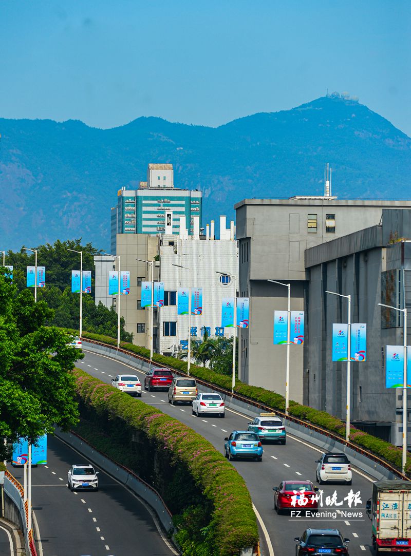 數(shù)字峰會即將舉辦,榕城街頭氛圍濃厚。圖為烏山立交橋上的數(shù)字峰會宣傳標語。
