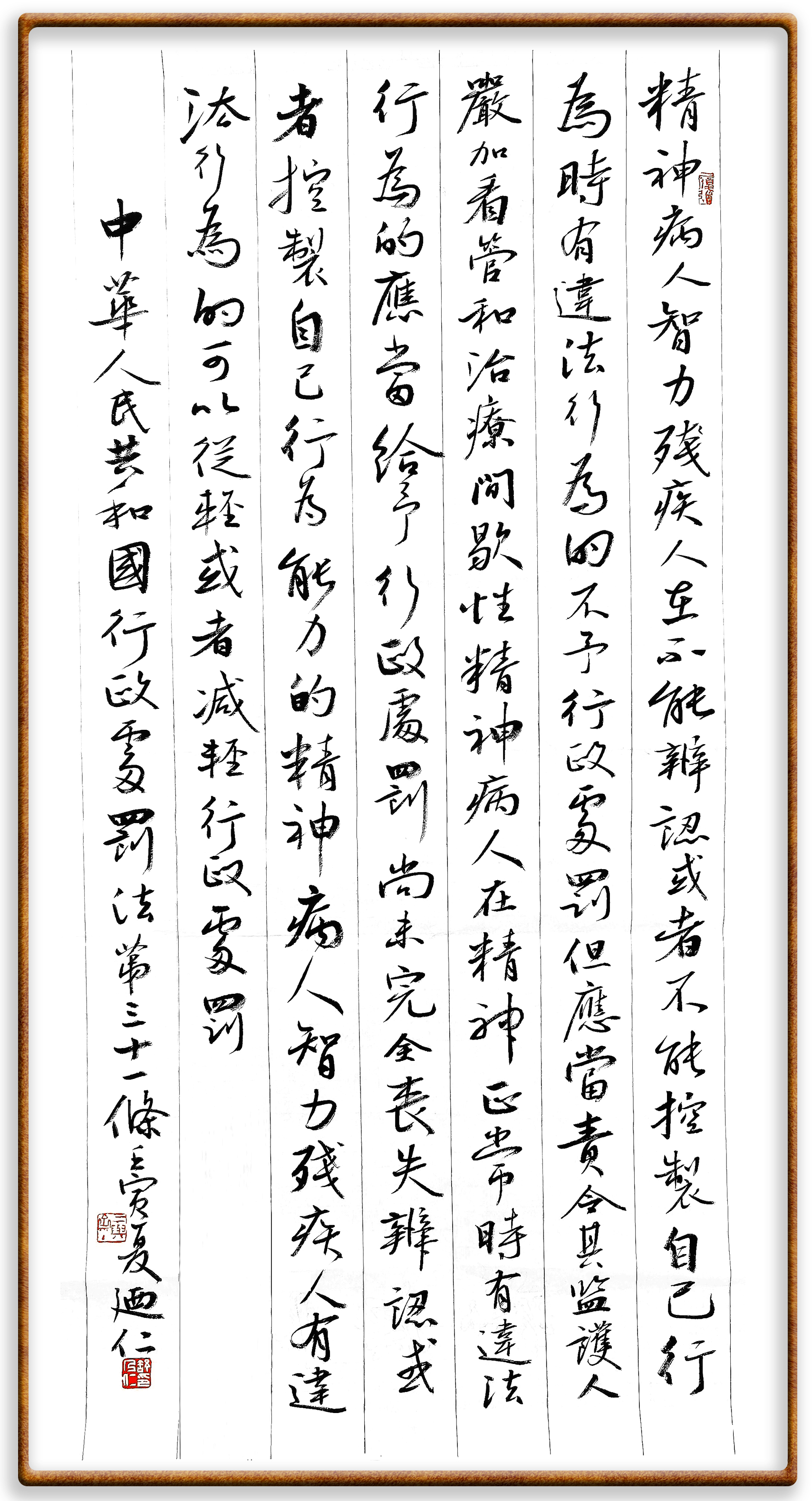 繼《中華人民共和國民法典》《中華人民共和國土地管理法》《中華人民共和國土地管理法實(shí)施條例》《中華人民共和國法律援助法》之后,法治日報(bào)社聯(lián)合北京市司法局、北京市書法家協(xié)會(huì),將筆端對準(zhǔn)《中華人民共和國憲法》和《中華人民共和國行政處罰法》。
