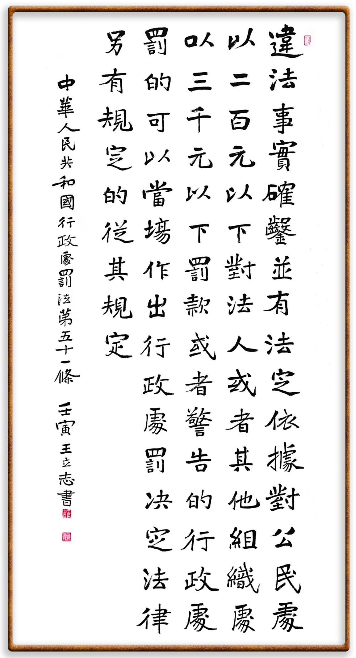 繼《中華人民共和國(guó)民法典》《中華人民共和國(guó)土地管理法》《中華人民共和國(guó)土地管理法實(shí)施條例》《中華人民共和國(guó)法律援助法》之后,法治日?qǐng)?bào)社聯(lián)合北京市司法局、北京書(shū)法家協(xié)會(huì),將筆端對(duì)準(zhǔn)《中華人民共和國(guó)憲法》和《中華人民共和國(guó)行政處罰法》。