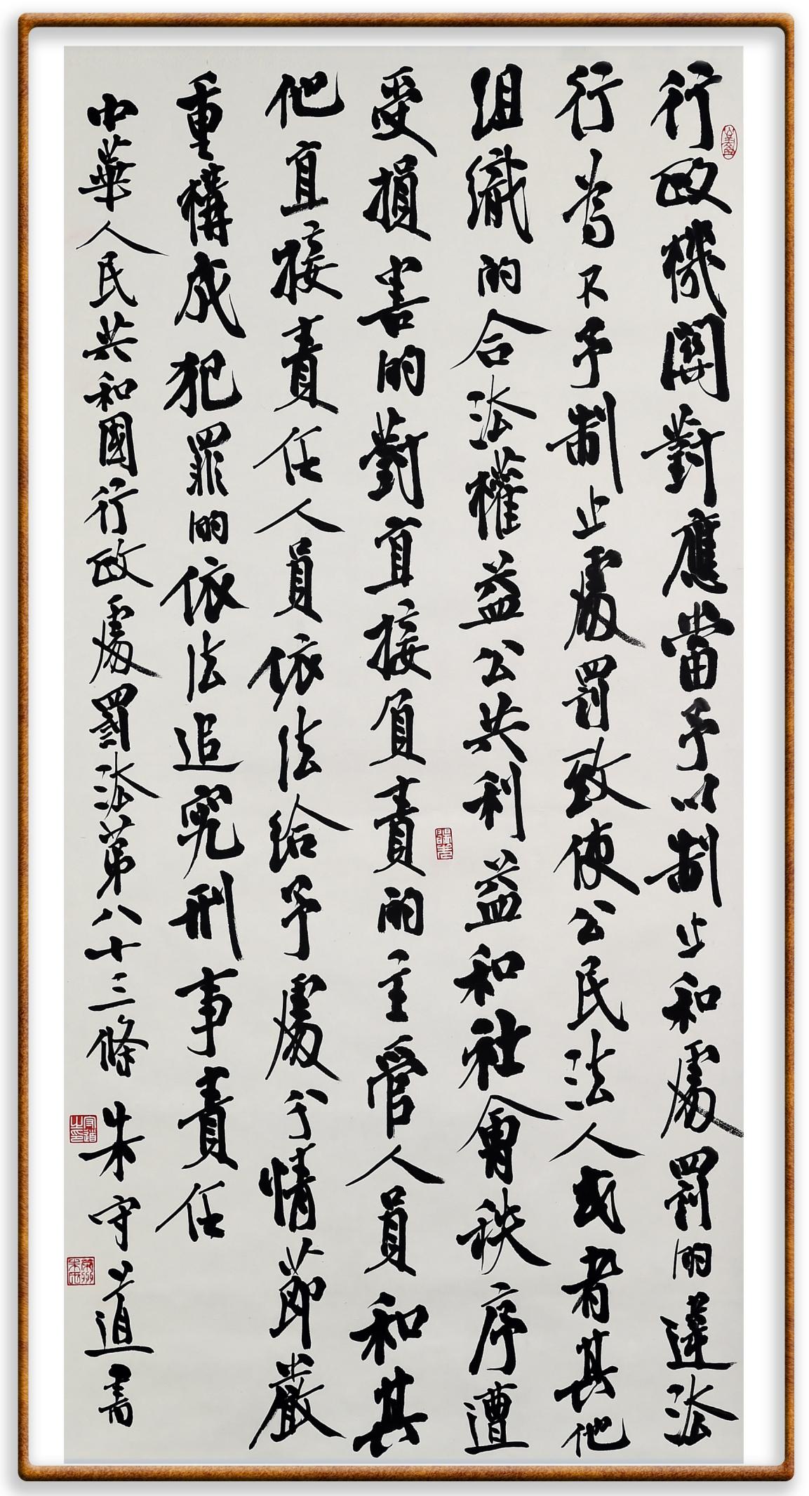 繼《中華人民共和國民法典》《中華人民共和國土地管理法》《中華人民共和國土地管理法實施條例》《中華人民共和國法律援助法》之后,法治日報社聯(lián)合北京市司法局、北京書法家協(xié)會,將筆端對準《中華人民共和國憲法》和《中華人民共和國行政處罰法》。