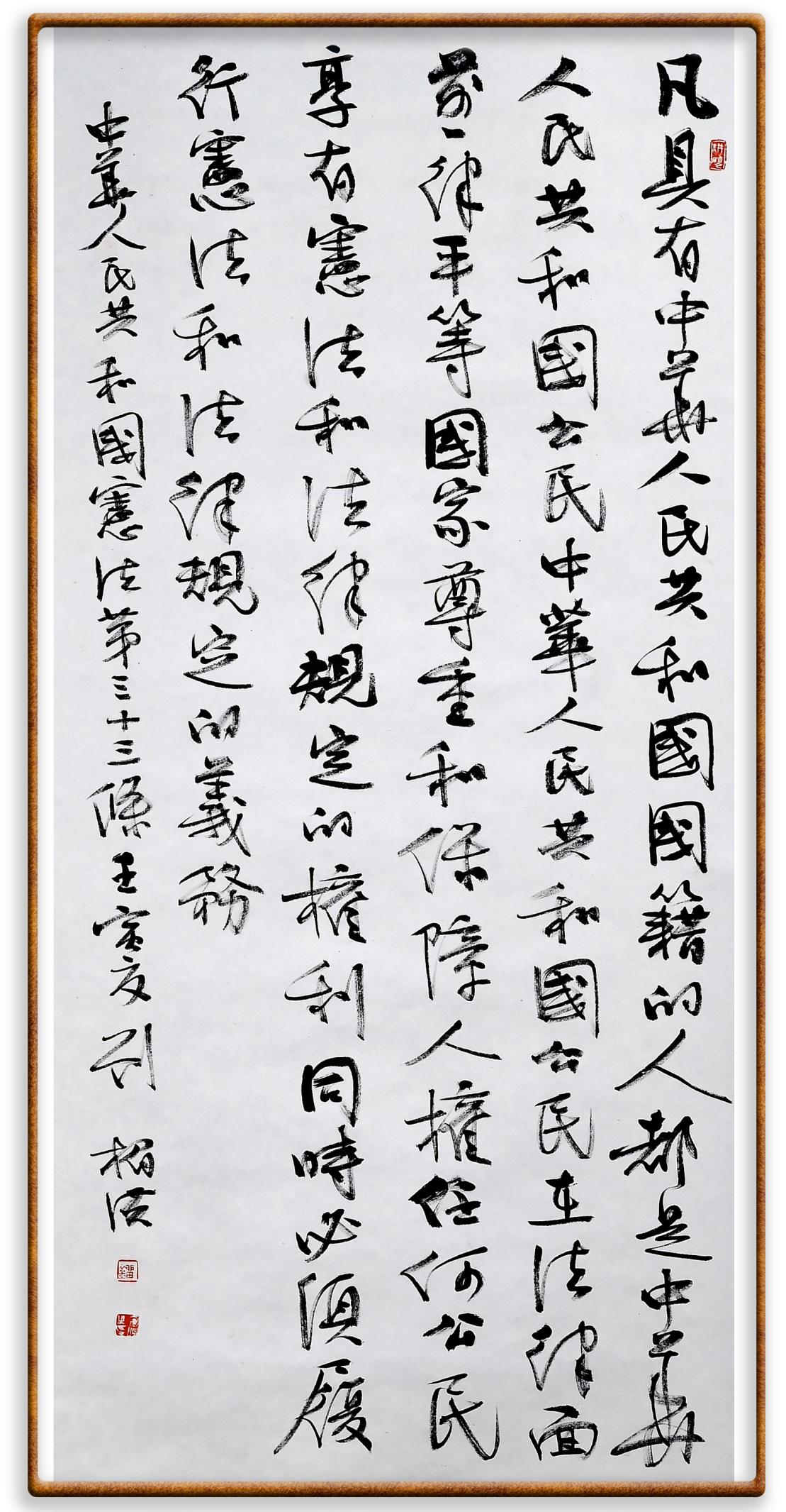 繼《中華人民共和國民法典》《中華人民共和國土地管理法》《中華人民共和國土地管理法實(shí)施條例》《中華人民共和國法律援助法》之后,法治日?qǐng)?bào)社聯(lián)合北京市司法局、北京書法家協(xié)會(huì),將筆端對(duì)準(zhǔn)《中華人民共和國憲法》和《中華人民共和國行政處罰法》。