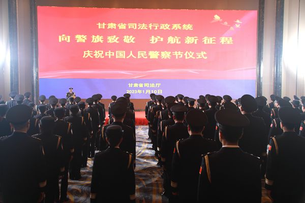 1月10日,甘肅省司法行政系統(tǒng)在蘭州舉行“向警旗致敬 護(hù)航新征程”第三個(gè)“中國人民警察節(jié)慶”祝儀式,省司法廳機(jī)關(guān)相關(guān)局處室、省監(jiān)獄管理局、省戒毒管理局和基層監(jiān)所民警代表參加了慶祝儀式。
